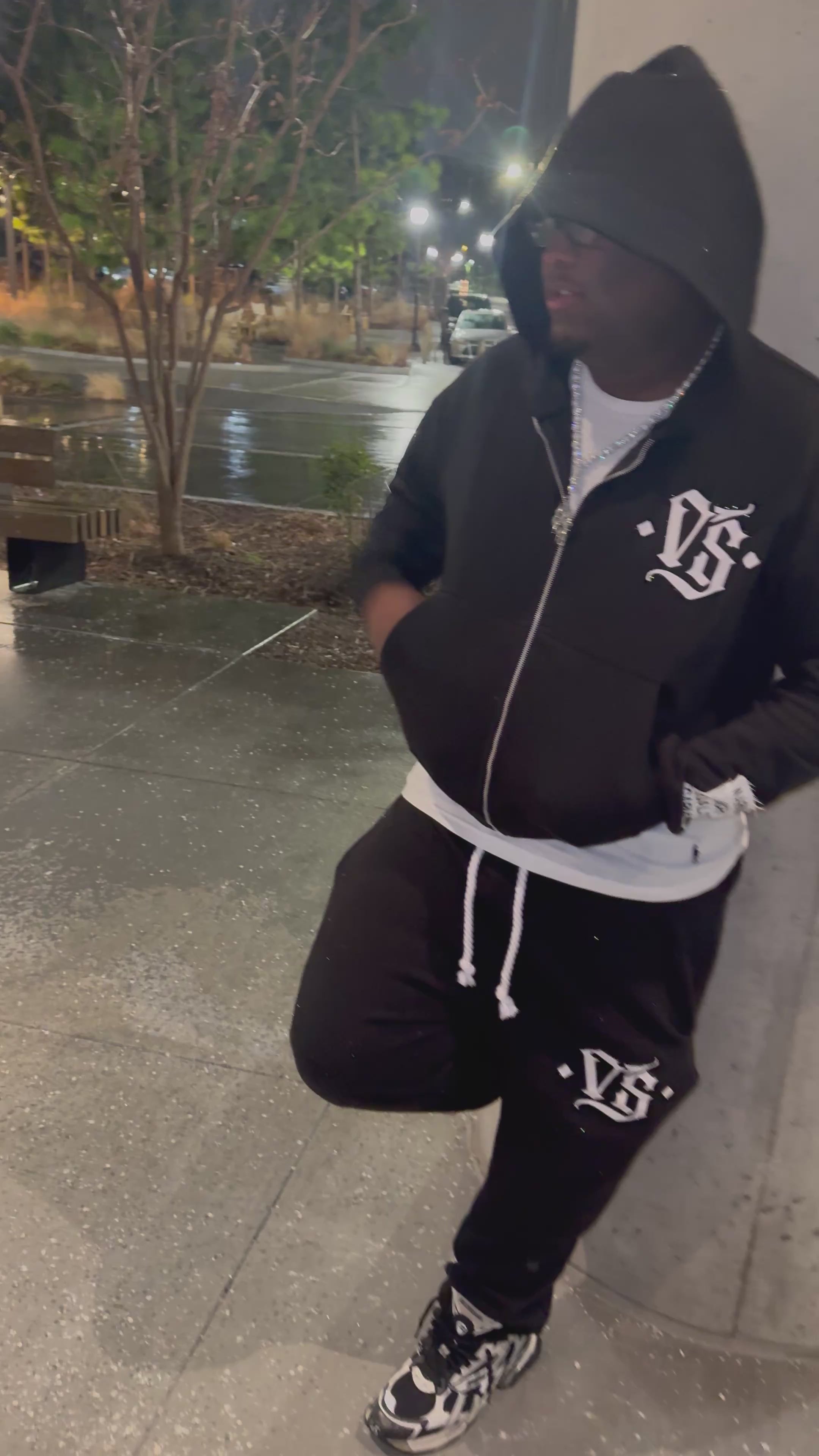 -Rhinestones all over hood and right sleeve